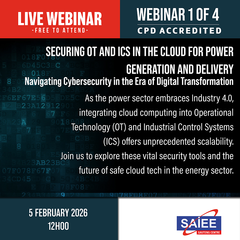 The SAIEE Central Gauteng Centre presents this webinar, the first in a series of four CPD-accredited sessions. The webinars will be hosted on the 5th, 12th, 19th, and 26th of February 2026. We look forward to hosting you.